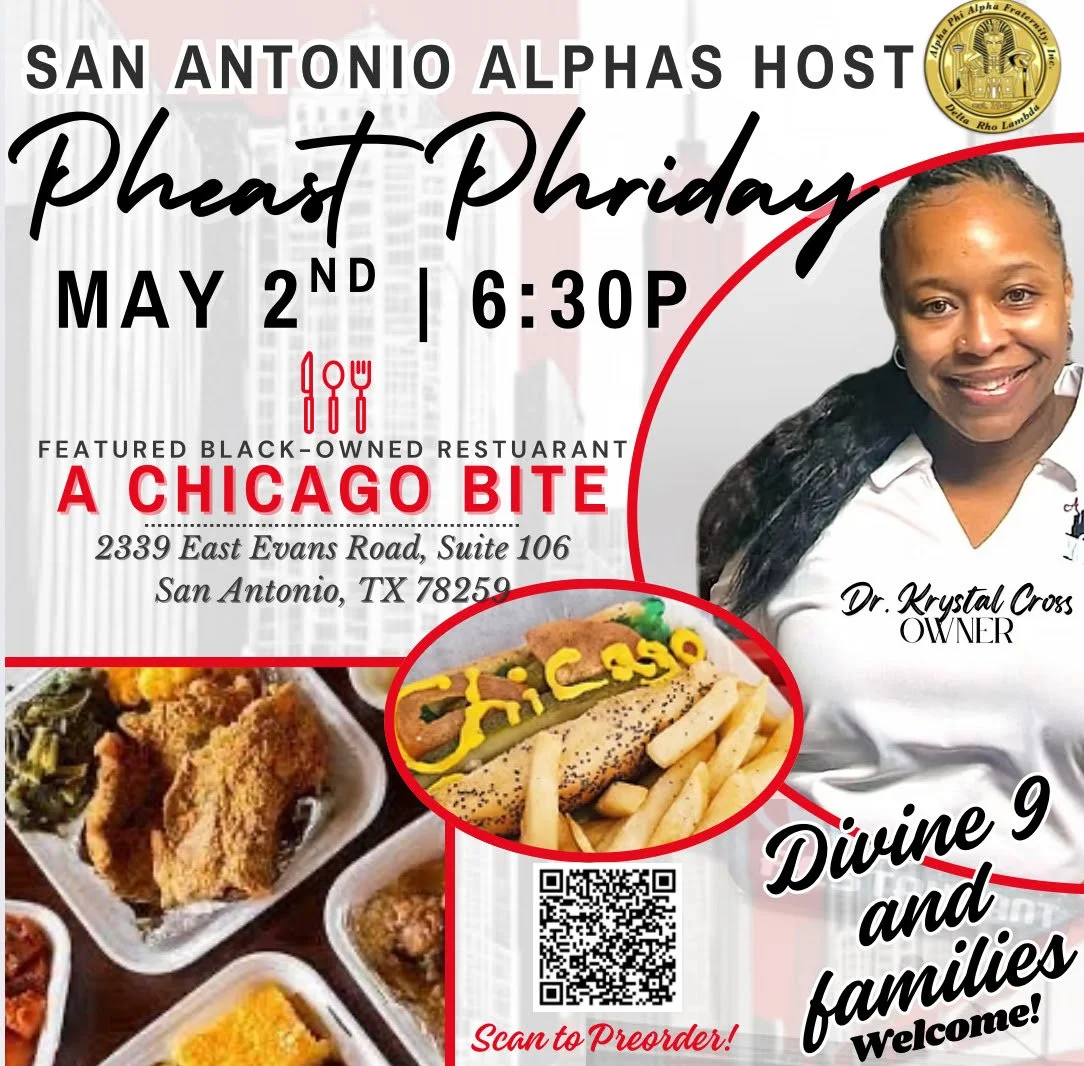 Join the San Antonio Alphas on May 2nd at 6:30 PM for an evening of flavor and fellowship at A Chicago Bite—a featured Black-owned restaurant!